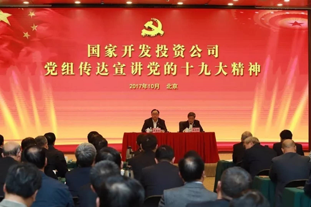 学习宣传贯彻党的十九大精神,是国家开发投资公司各级党组织及广大党员干部当前和今后一个时期的首要政治任务和头等大事。公司党组研究制定了《中共国家开发投资公司党组关于认真学习宣传贯彻党的十九大精神的实施方案》,在集团广大党员干部中迅速掀起学习宣传贯彻新热潮,并着力在“五个维度全覆盖”上下功夫,切实抓好组织领导、学习培训、宣传引导、督查指导和推动工作,确保学习宣传贯彻党的十九大精神取得实实在在的效果。