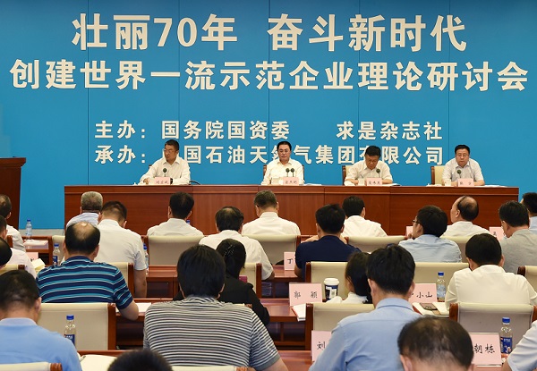 9月5日,由国务院国资委、求是杂志社联合主办的“壮丽70年 奋斗新时代 创建世界一流示范企业”理论研讨会在京举行。国务院国资委副主任、党委委员翁杰明出席会议并讲话,求是杂志社社长夏伟东致辞,求是杂志社副总编张宇主持会议。