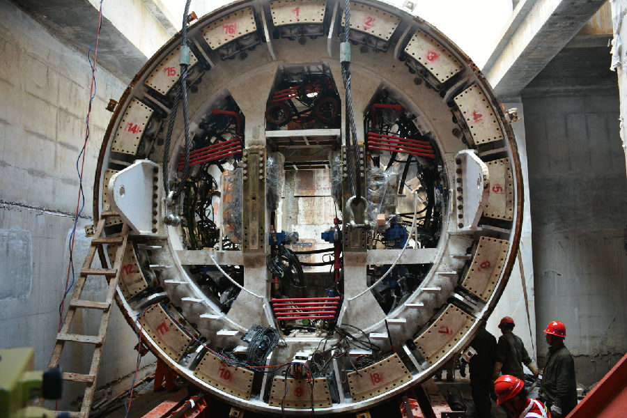鞠义成分析说,“数十米深的江底勘探,精度难以保证,勘探的卵石尺寸大小很可能超出预期。”项目部决定进入盾构机最前端的刀盘处一探究竟。“盾构机刀盘切削的卵石块都要经过格栅才能排出,就好比我们常见的过滤网。”鞠义成比喻说,“而网格直径大小不超过10厘米,很明显卵石已经超限,将滤网堵塞,造成排泥不畅,掘进缓慢。”找到了症结后,项目部立即改造,将矩形格栅孔径从10厘米扩大到了12.5厘米。这一改造让盾构掘进速度恢复正常。掘进一年多来,项目部创造了单线单班掘进10环、单日掘进16环、单月掘进337环的好成绩,而此次厚桔区间双线贯通标志着福州地铁2号线穿江之旅圆满结束。