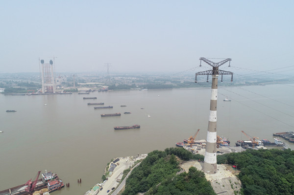 五峰山跨江线路位于镇江市丹徒区长江主航道,始建于20世纪60年代,是我国最早一批跨江输电干线。五峰山跨江线路设计允许的最高船桅高度为37.46米,已不能满足长江5万吨级海轮通航净空50米的要求。为此,国网江苏电力决定拆除现有跨江线路,原地升高改造。改造结束后,长江南京以下12.5米深水航道的净空障碍将被全部消除。该线路承担的送电任务,已经转由相邻线路输送,以确保施工不会对供电造成影响。