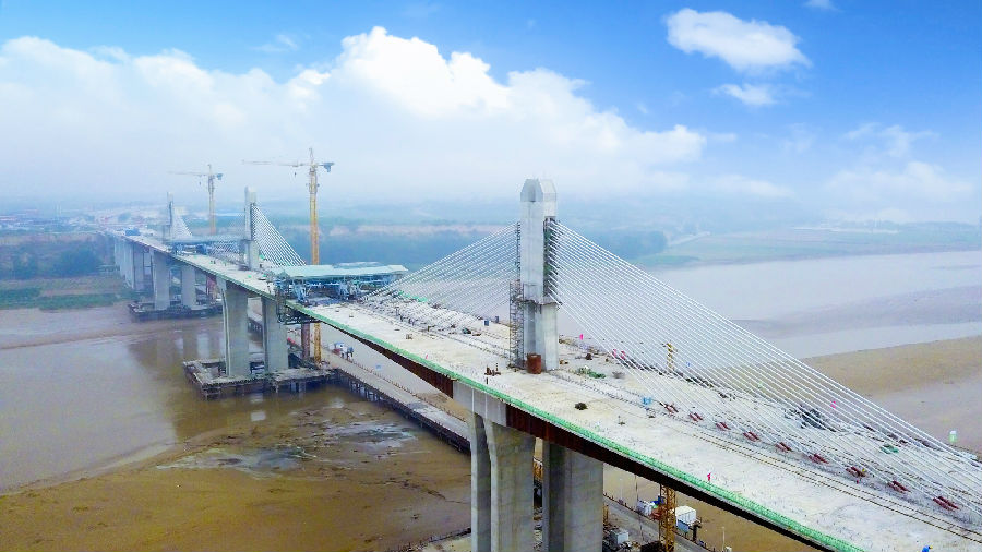 运宝黄河大桥地处山西运城与河南灵宝两地黄河交界处,是沟通晋西南和豫西北的重要公路桥梁。大桥全长1690米,采用双向六车道高速公路标准建设,设计时速80公里,桥宽34米。大桥主跨200米,是世界在建最大跨度波形钢腹板矮塔斜拉桥。