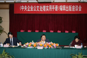 2006年11月15日下午,《中央企业公文处理实用手册》编辑出版座谈会在京召开。会议由国资委办公厅副主任王选文主持,国资委副秘书长、手册编委会主任马国安到会并作重要讲话。会议最后,举行了赠书仪式。参与编写的中国兵器装备集团公司等8家中央企业编委会成员和编写组全体成员参加了会议。