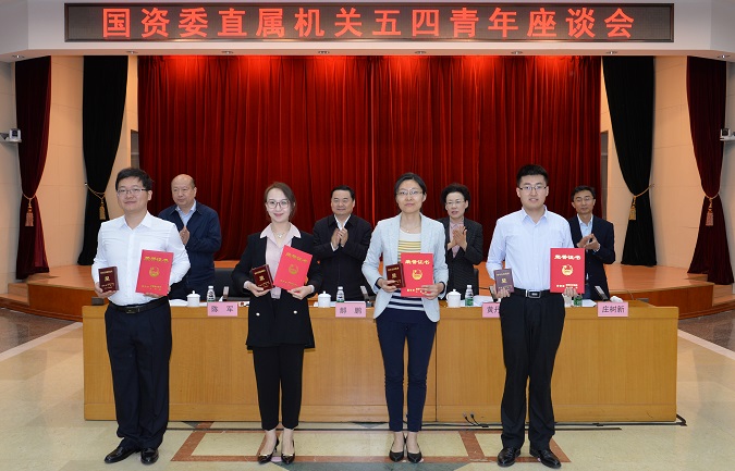 五四青年节前夕,国务院国资委党委召开青年座谈会,表彰委直属机关青年五四奖章(标兵)。国资委党委书记郝鹏出席座谈会,向直属机关青年同志致以节日的问候。国资委副主任、党委委员黄丹华出席座谈会,共同为获奖青年代表颁奖。