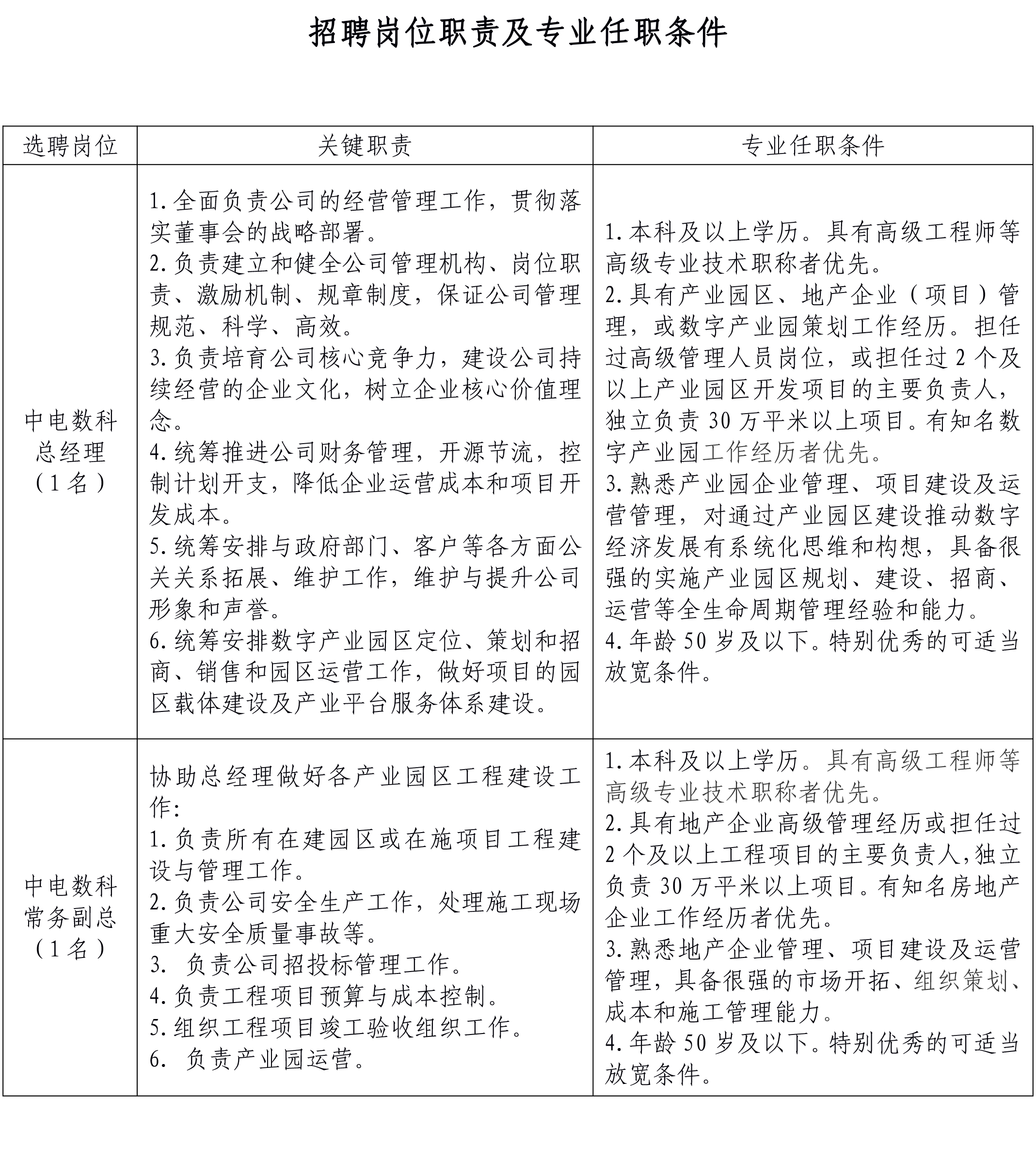 中电数科(北京)科技产业发展有限公司总经理1名,常务副总1名。