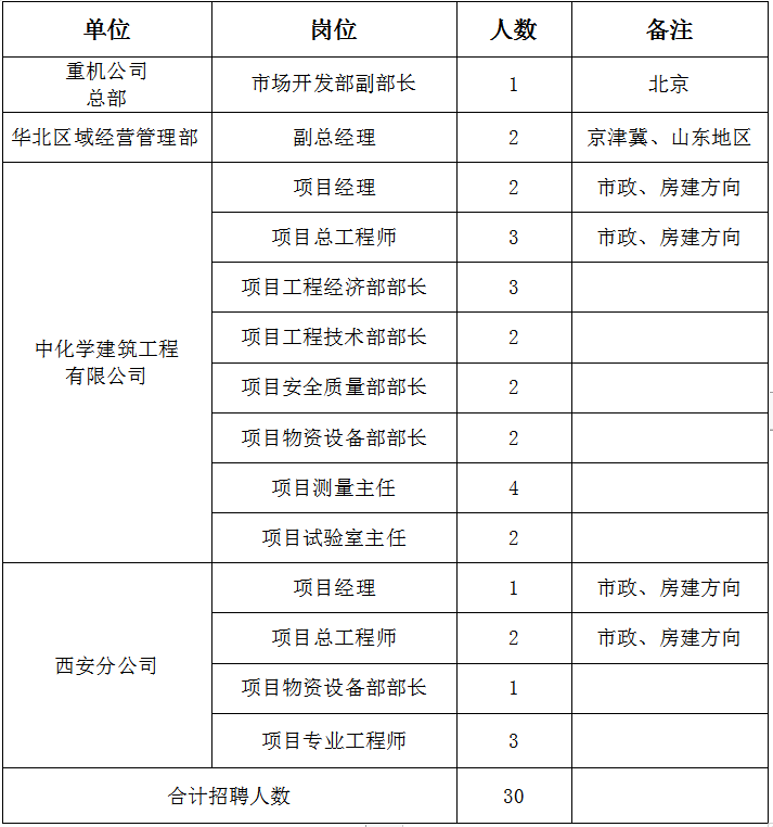 为了增强公司综合竞争能力,充实人才队伍,重机公司、中化学建工公司及西安分公司特面向社会公开招聘。现就有关事项公告如下: