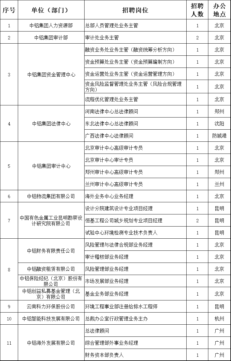 联系地址:北京市西直门北大街62号中国铝业集团有限公司人力资源部