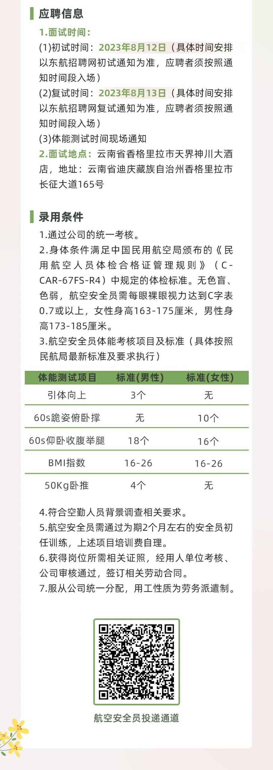 2023年度东方航空云南有限公司乘务员航空安全员招聘公告