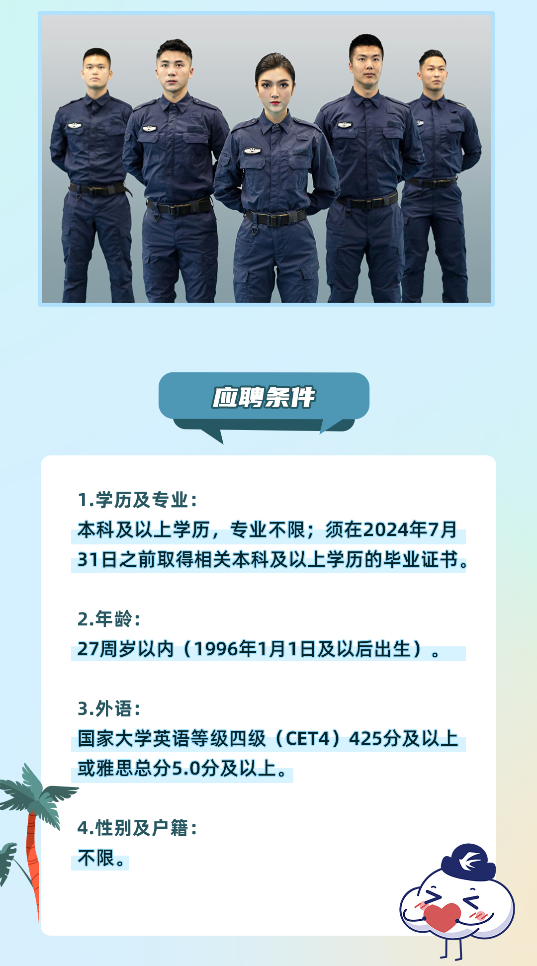 中国东方航空股份有限公司2024航空安全员校园招聘公告