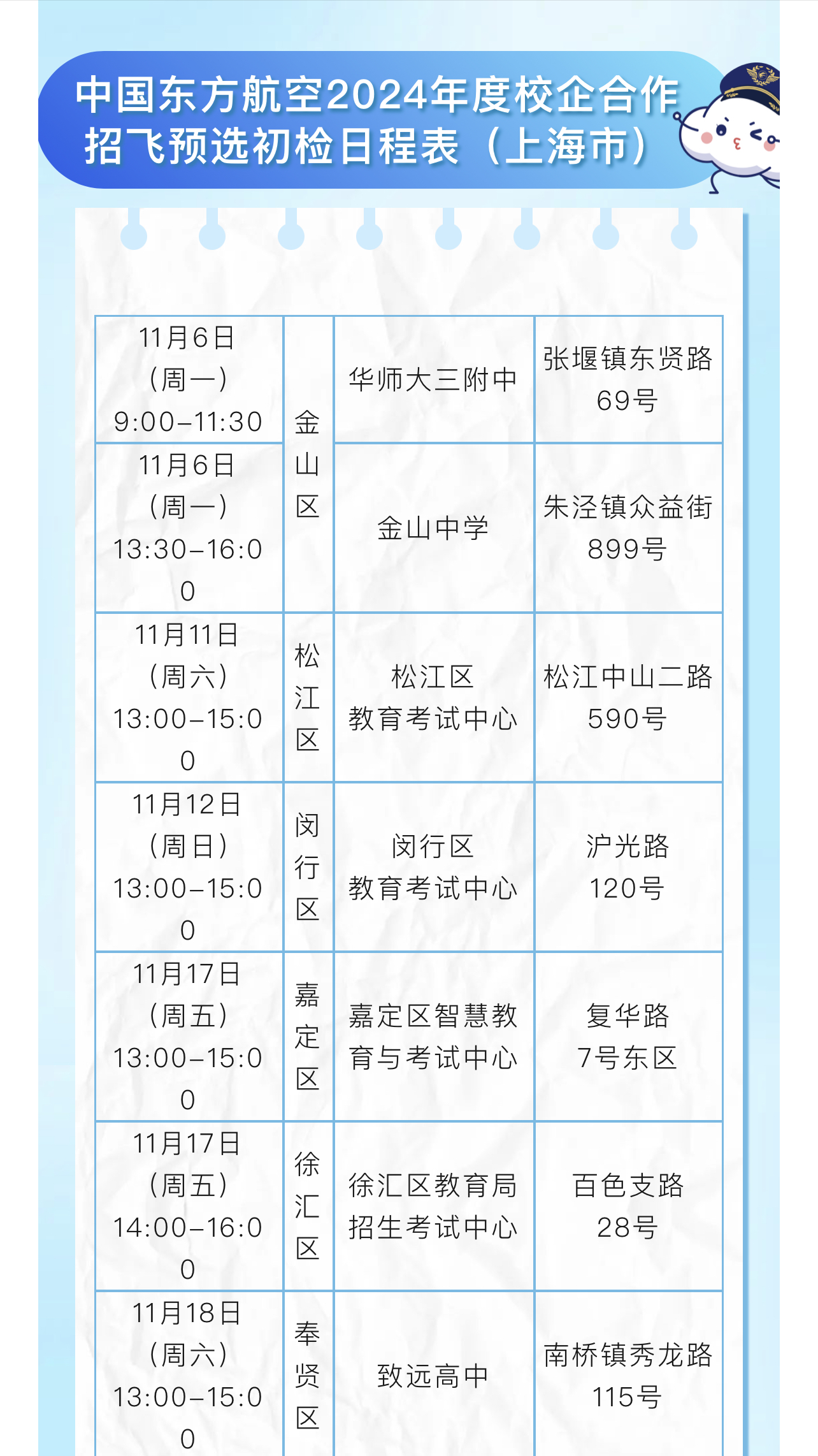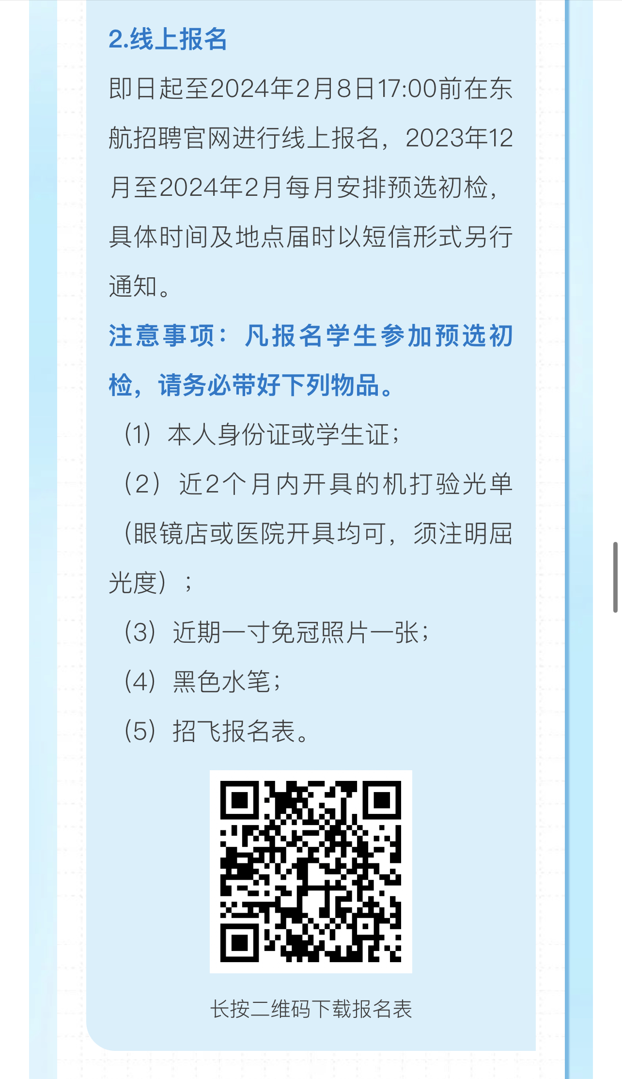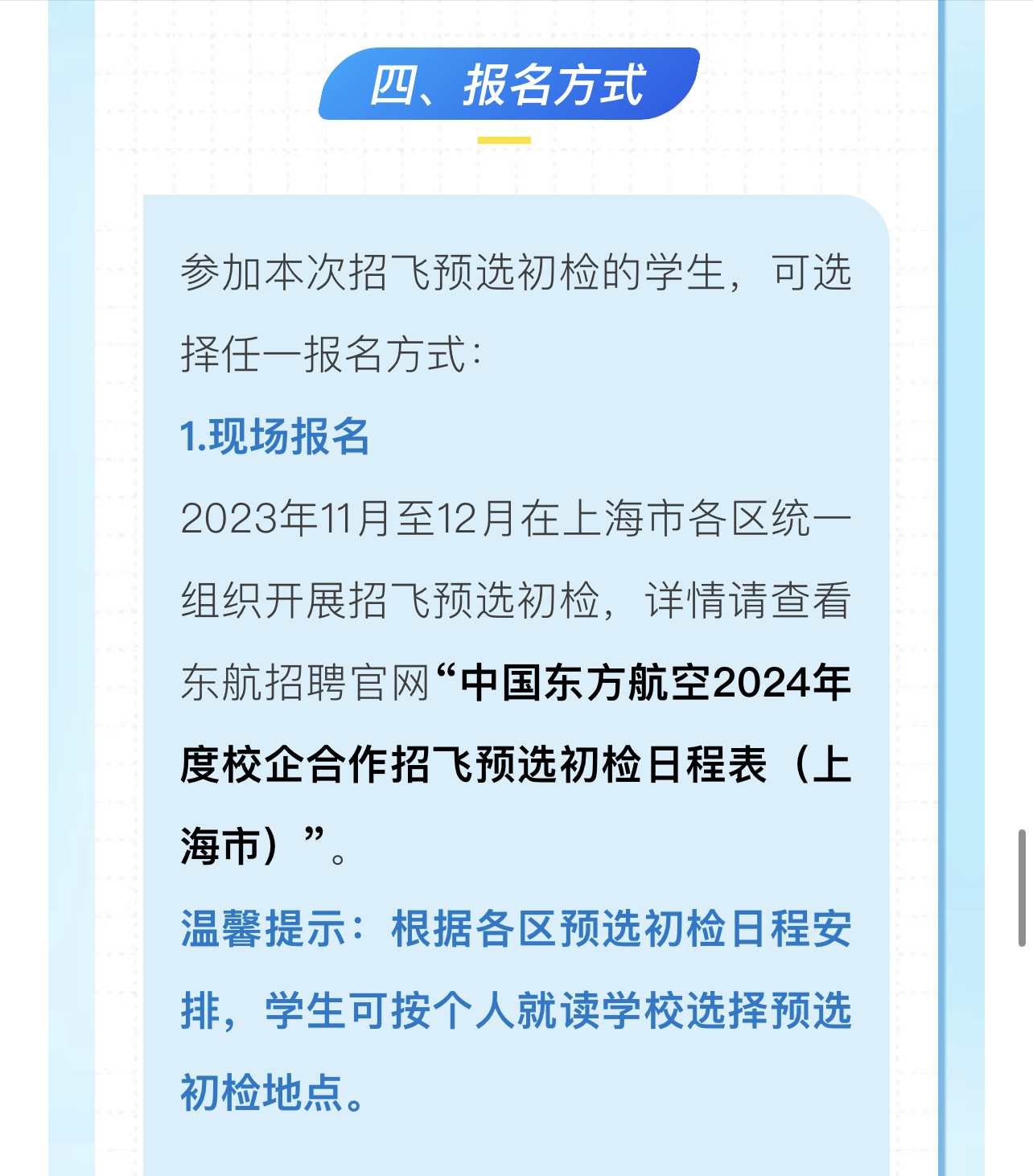 中国东方航空2024年度校企合作招飞简章(上海市)