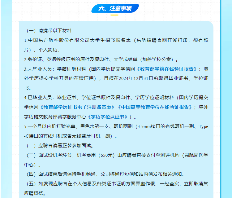 中国东航2024年度大学生招飞公告