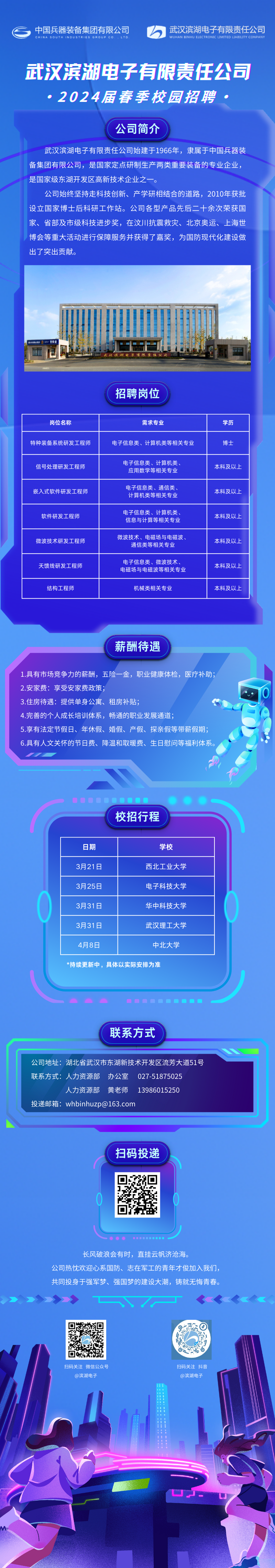兵器装备集团武汉滨湖电子2024春季校招公告