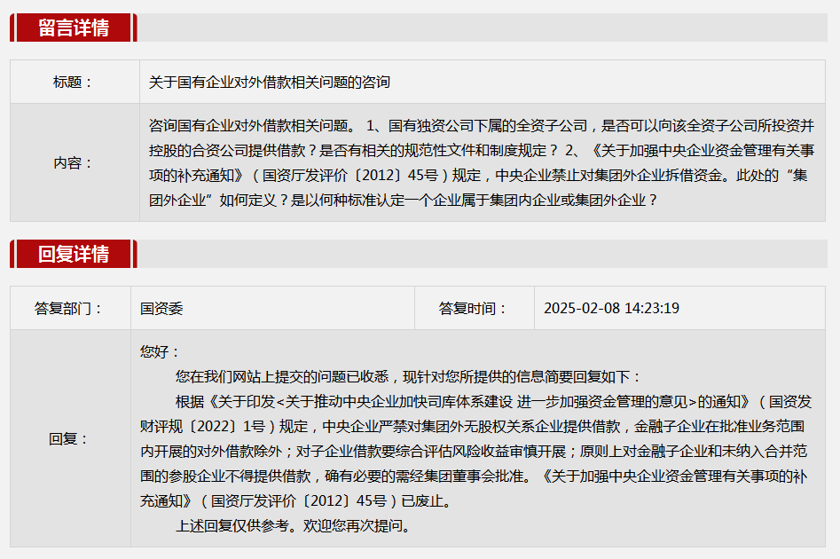2025年2月国务院国资委网站政务咨询栏目部分网友提出的咨询,我们初步做出了认真的回应,现选择五条关注度高、点击量高的问题,再次推荐分享。