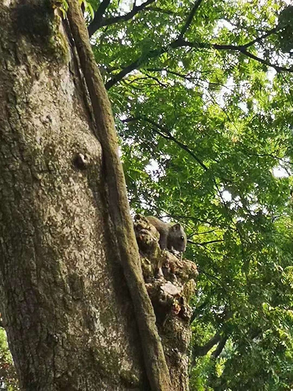 大树上经常有松鼠在仿生藤、人造树叶间跳来跳去,可能它们也没发现这些混入自然界的“演技派”。