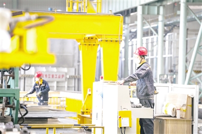 驻哈尔滨重点央企中铝集团东北轻合金有限责任公司的厂区中,工人在车间生产作业。
