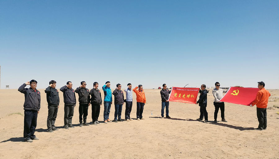 兵器工业集团:试验院某重点型号试验现场,党员先锋队庄严宣誓,“万众一心加油干,越是艰险越向前”。