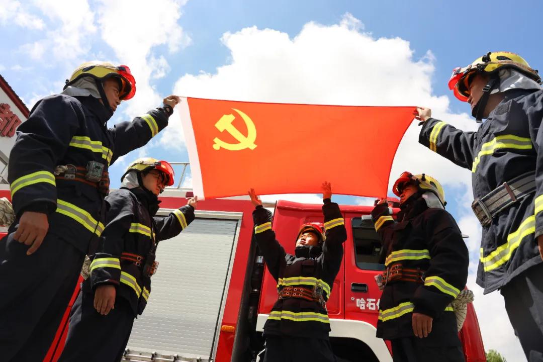 我们来自中国石油哈尔滨石化,我们在岗位上刻苦训练为企业消防安全保驾护航,为党庆生。