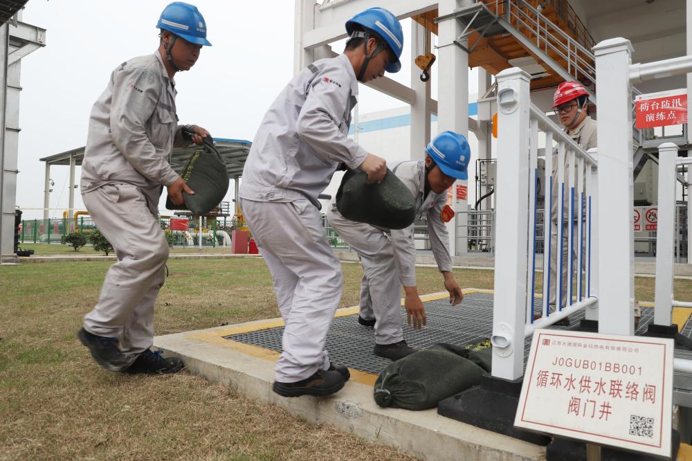 江苏省长江太湖水情形势异常严峻,40多个站点水位超警。7月18日起,南京、扬州等多地潮位连续三日刷新历史极值。大唐江苏发电有限公司坚持人民至上、生命至上,全力以赴加强现场安全管理和防洪应急管理,守土尽责做好沿江沿海电厂大堤值守,确保电力热力可靠供应和人民群众生命财产安全。图为江苏大唐国际金坛热电有限责任公司全面进入“迎战”状态,地企联动构筑企业防汛“大堤”。