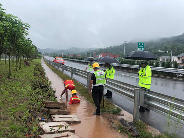 在重庆大足,中国铁建重庆投资集团运营管理的潼荣高速排水沟堵塞积水蔓延至车道,项目养护人员在排水管道具体位置不明确的情况下,手摸脚踩寻找排水管的位置,30分钟内恢复道路畅通。