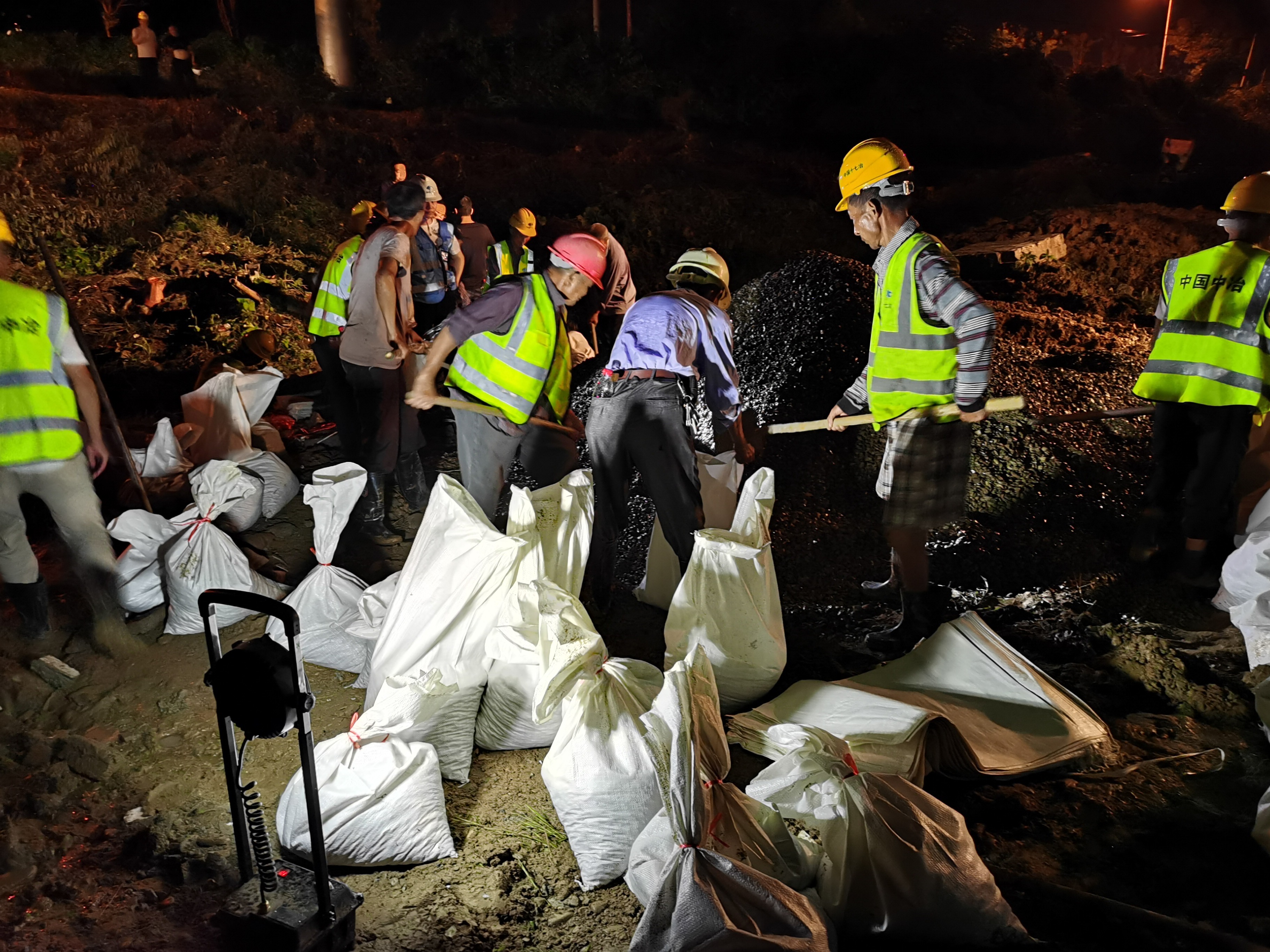 中国十七冶安徽东至项目夜晚抢险
