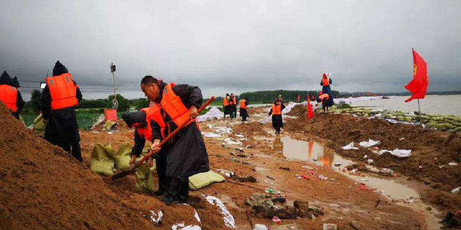 二是强化组织保障,严格落实防汛工作责任。制定《引江济淮工程(安徽段)2020年度汛方案》,建立集团公司、现场建管处、工程项目部三级防汛工作责任体系和集团公司领导分片包保督导机制,明确责任分工,层层压实防汛责任。7月9日,将防汛应急响应等级提升到Ⅱ级,在枞阳引江枢纽项目部设立前线防汛指挥部,建立汛情会商机制,该集团领导深入一线、现场驻点、靠前指挥。