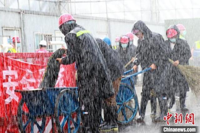 为了提升项目防汛抢险救灾实战能力,确保安全生产,一家央企用消防车模拟出突降暴雨的情形,来进行应急演练。