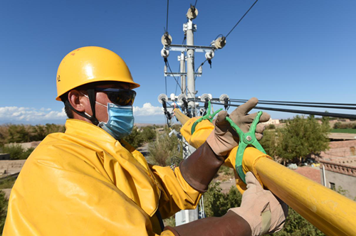 国网新疆吐鲁番供电公司员工在42℃高温下开展带电作业。