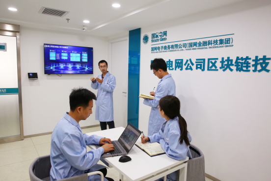 国网区块链技术实验室工作人员在讨论区块链技术攻关相关问题