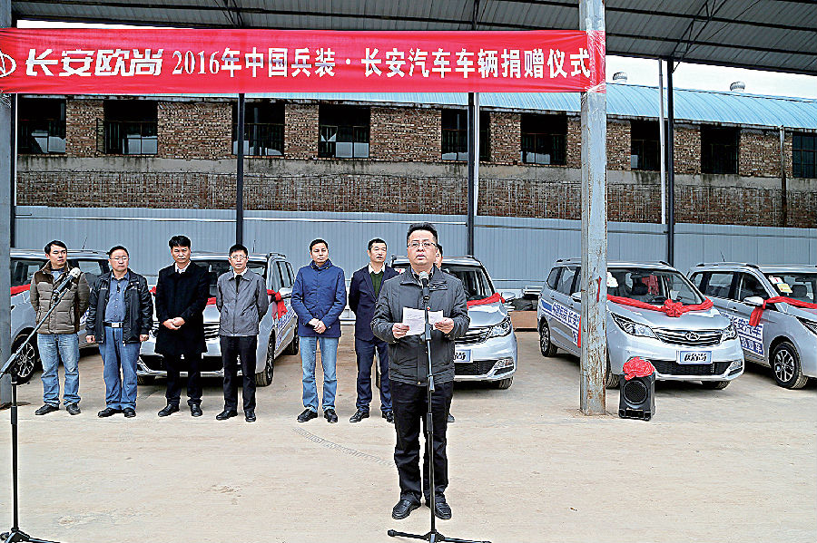 兵器装备集团向云南砚山县捐赠30辆长安欧尚车。