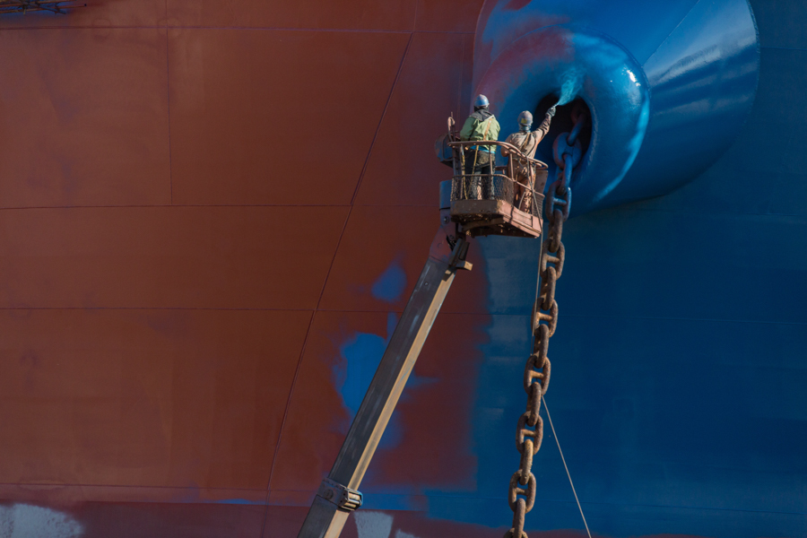 作品说明:拍摄于河北省秦皇岛市山海关船舶重工有限责任公司,表现了船厂工人兢兢业业的工作场景。